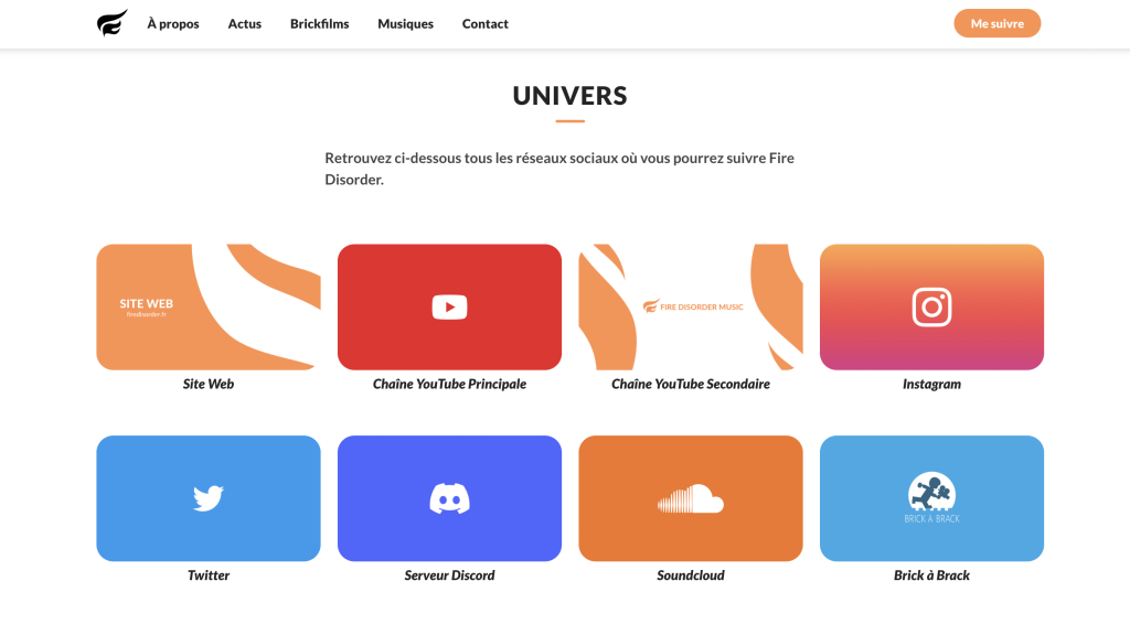 Une nouvelle page fait son arrivée sur le site. Vous avez peut-être remarqué le bouton « Me suivre » sur l’en-tête. Eh bien, ce bouton évolue. Au lieu de vous emmener sur une pop-up avec quelques de mes réseaux sociaux, vous voilà désormais une page flambant neuve de son petit nom : « Univers ».